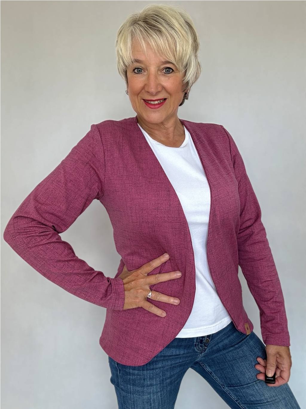 Barva: starorůžová s efekt jeans (melír - tisk černé šrafování)