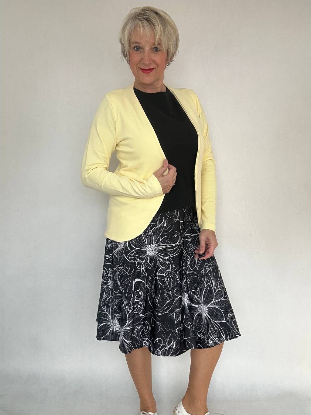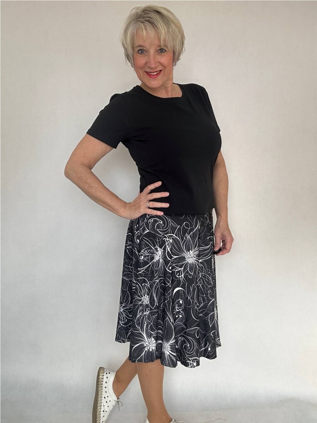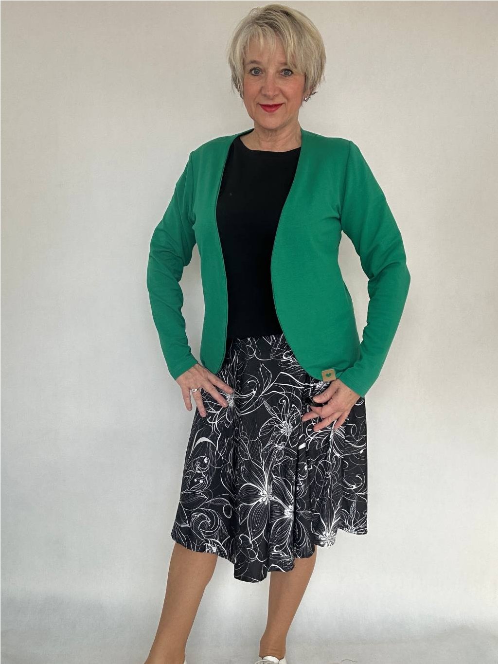 - V pase je pružný náplet (šířka 7 cm) – lze jej přehnout napůl a délku sukně tak ještě zkrátit