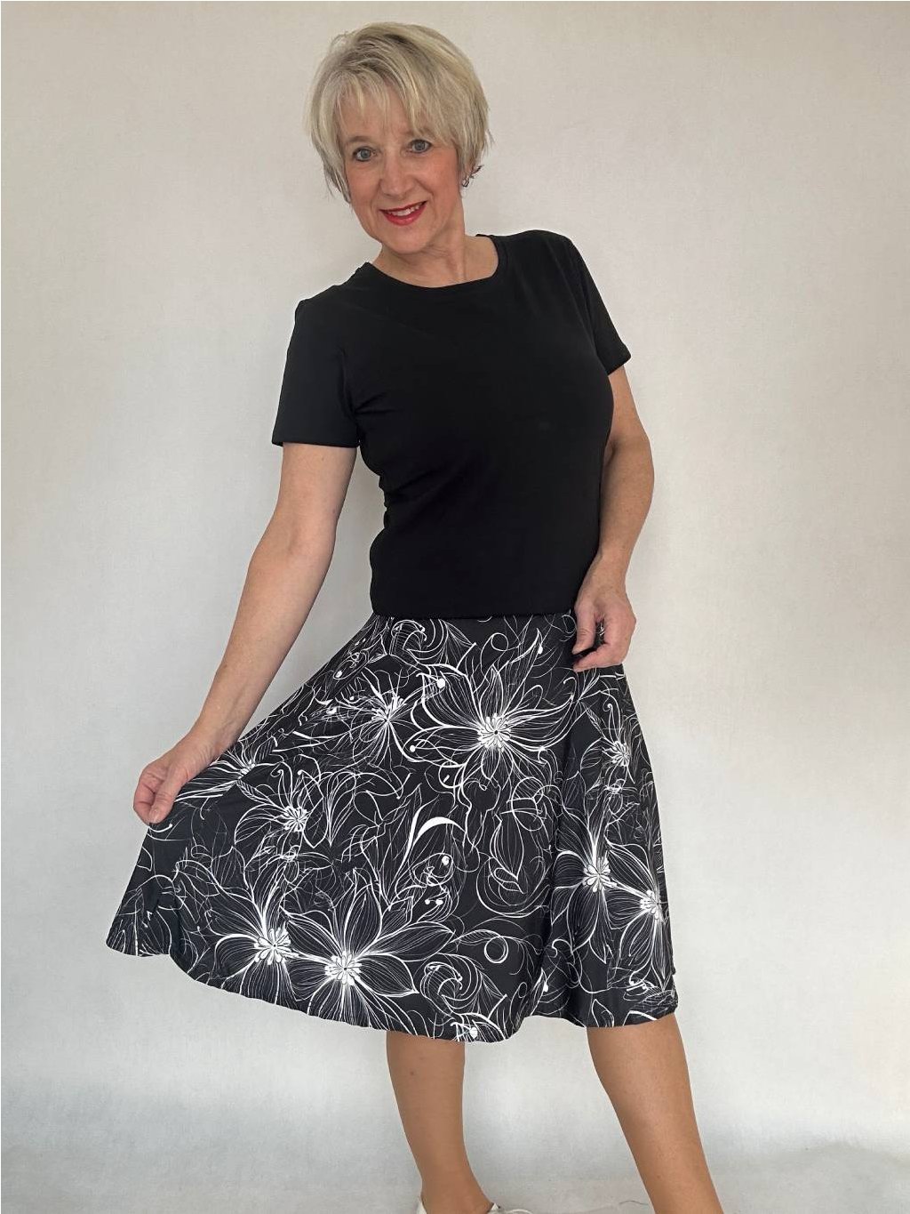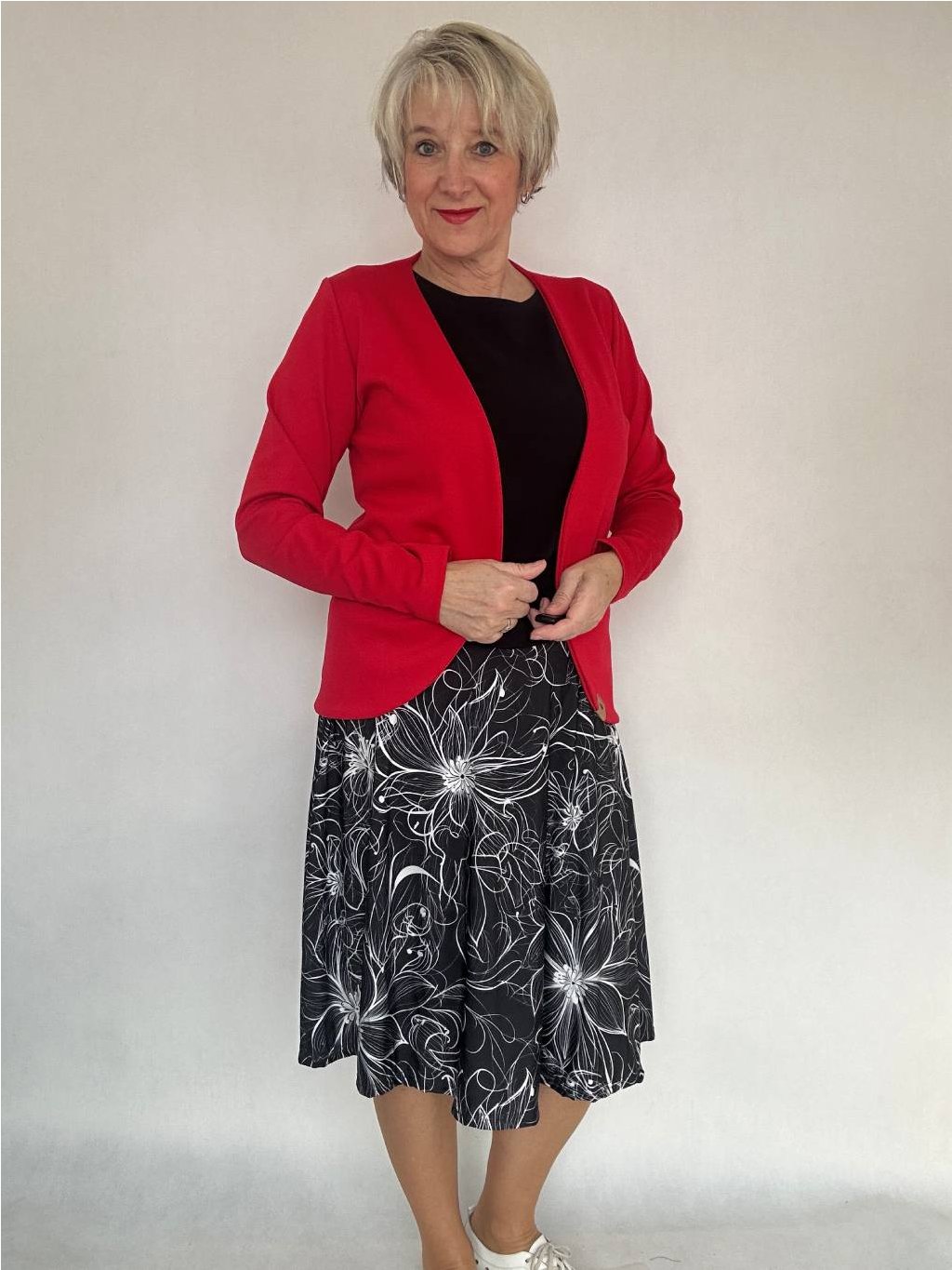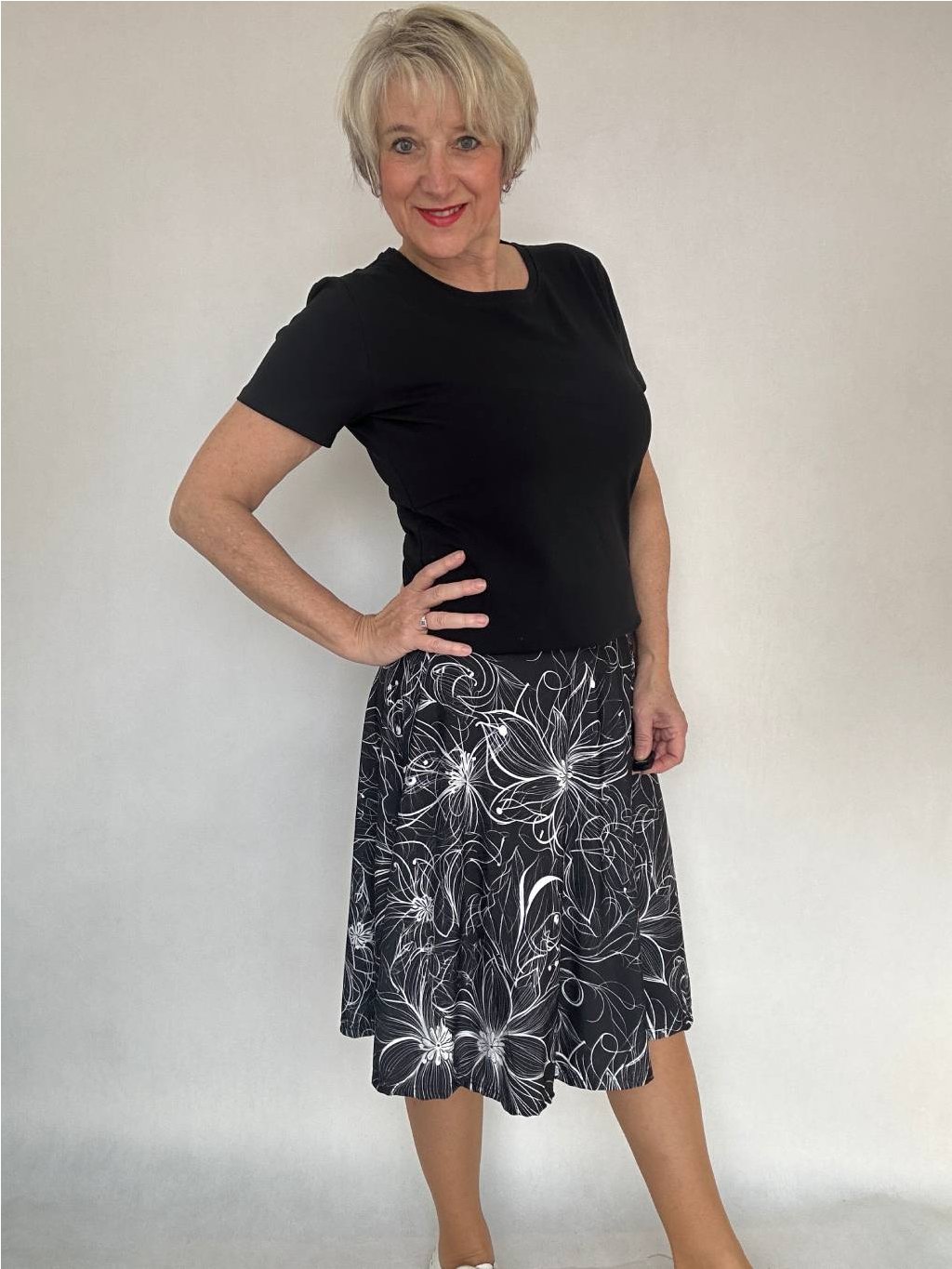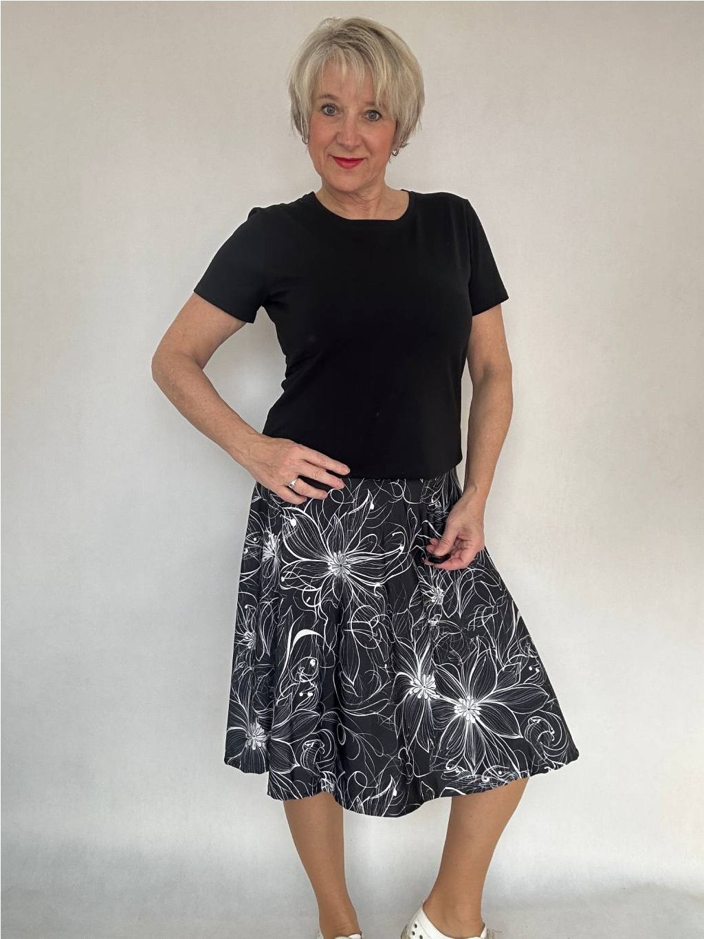 - V pase je pružný náplet (šířka 7 cm) – lze jej přehnout napůl a délku sukně tak ještě zkrátit
