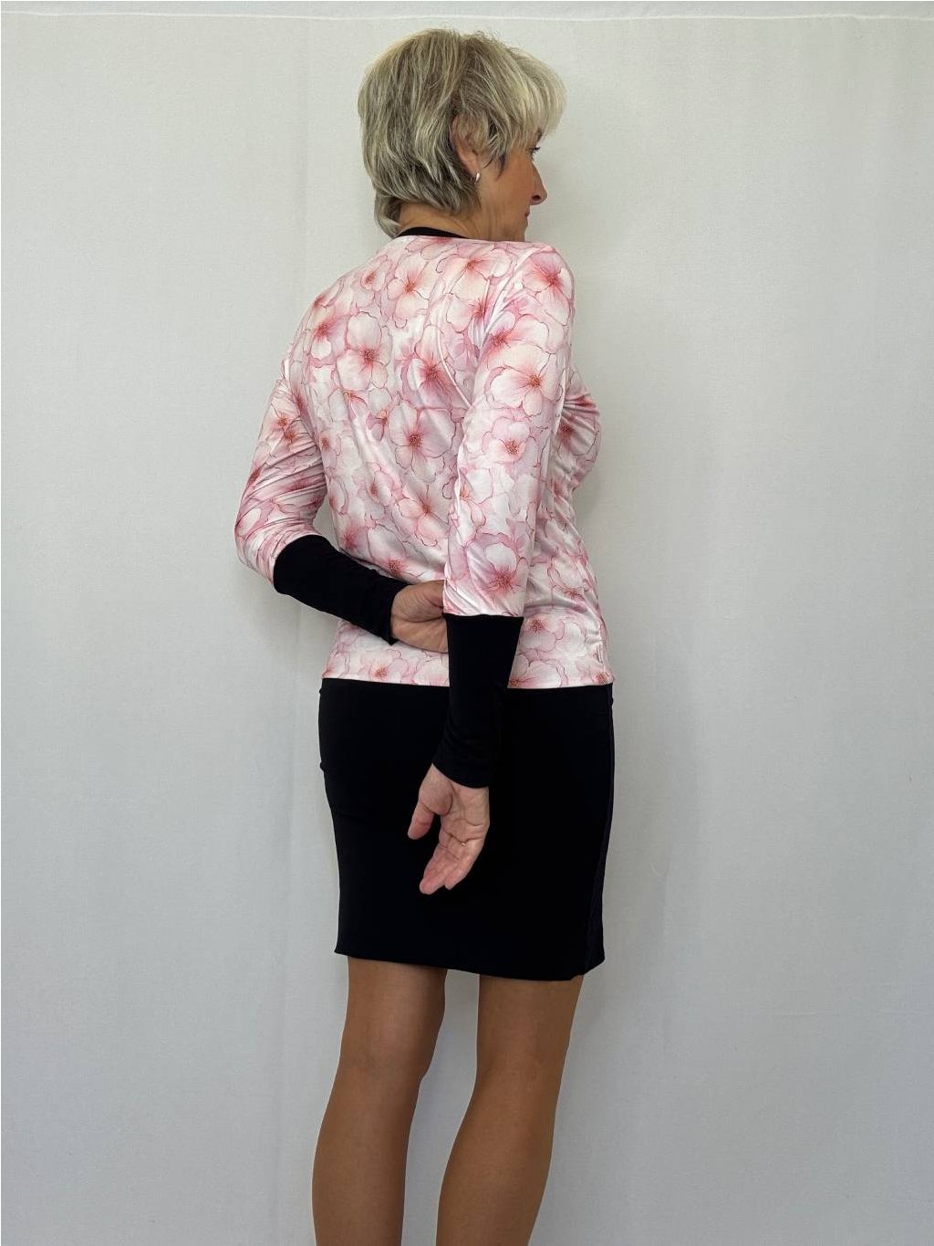 Modelka měří 162 cm a má velikost M (prsa 98 cm, pas 84cm, boky 102 cm)