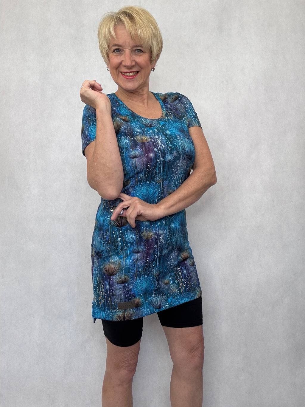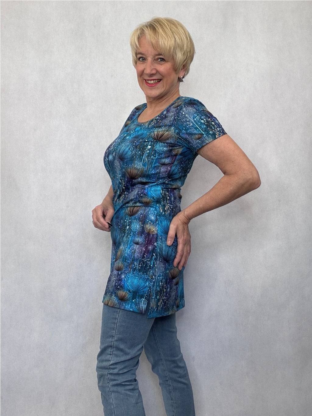 Modelka měří 162 cm a má velikost M (prsa 98 cm, pas 84cm, boky 102 cm)