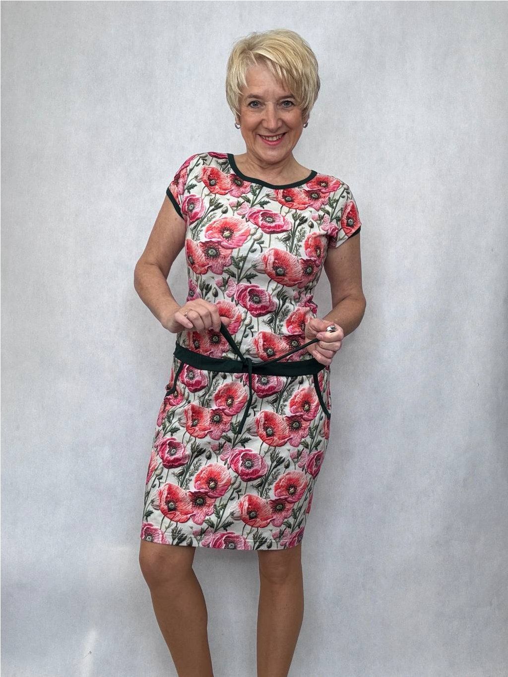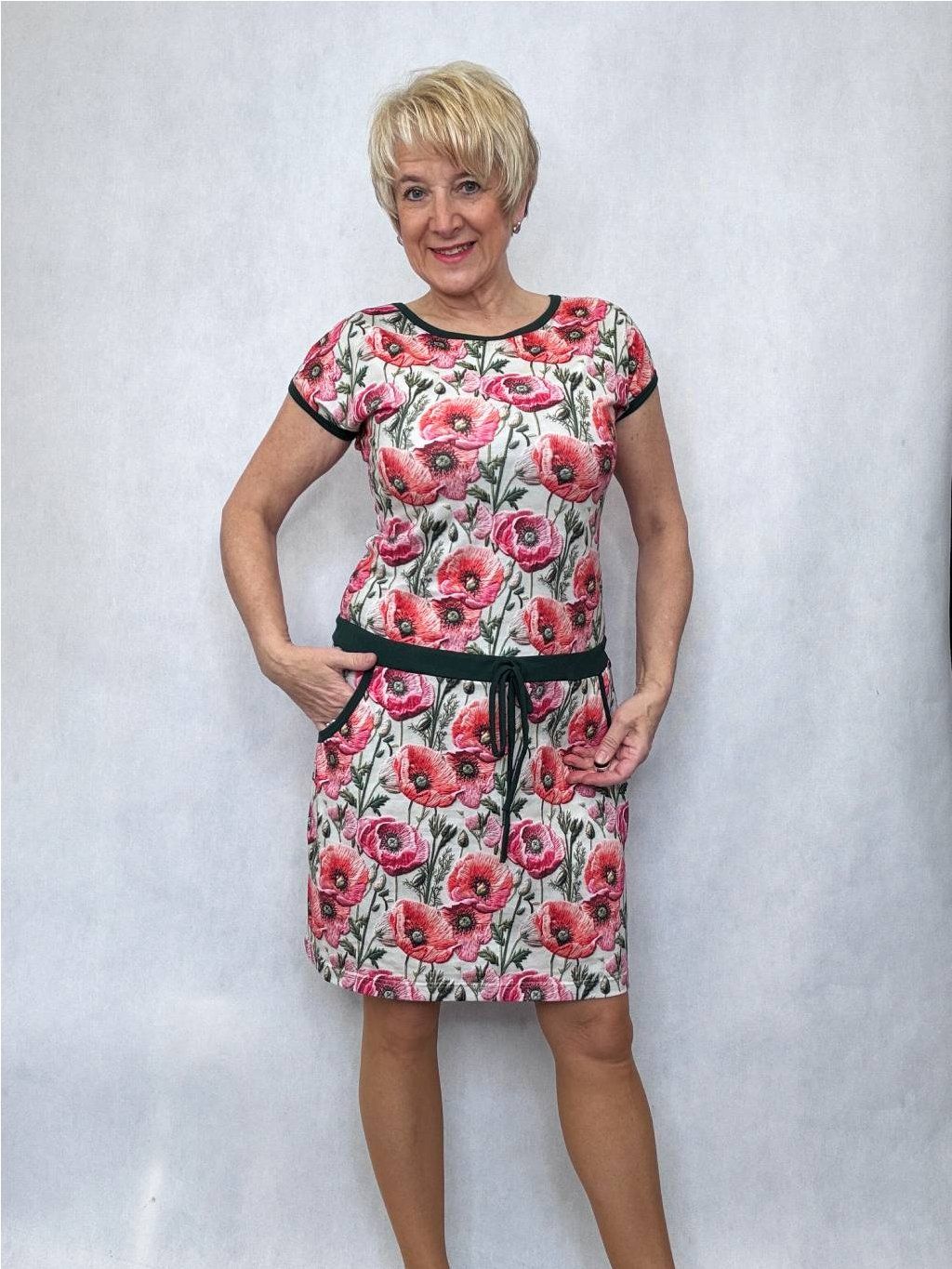 - Spadlý rukáv je lemovaný a šaty mají praktické kapsy.