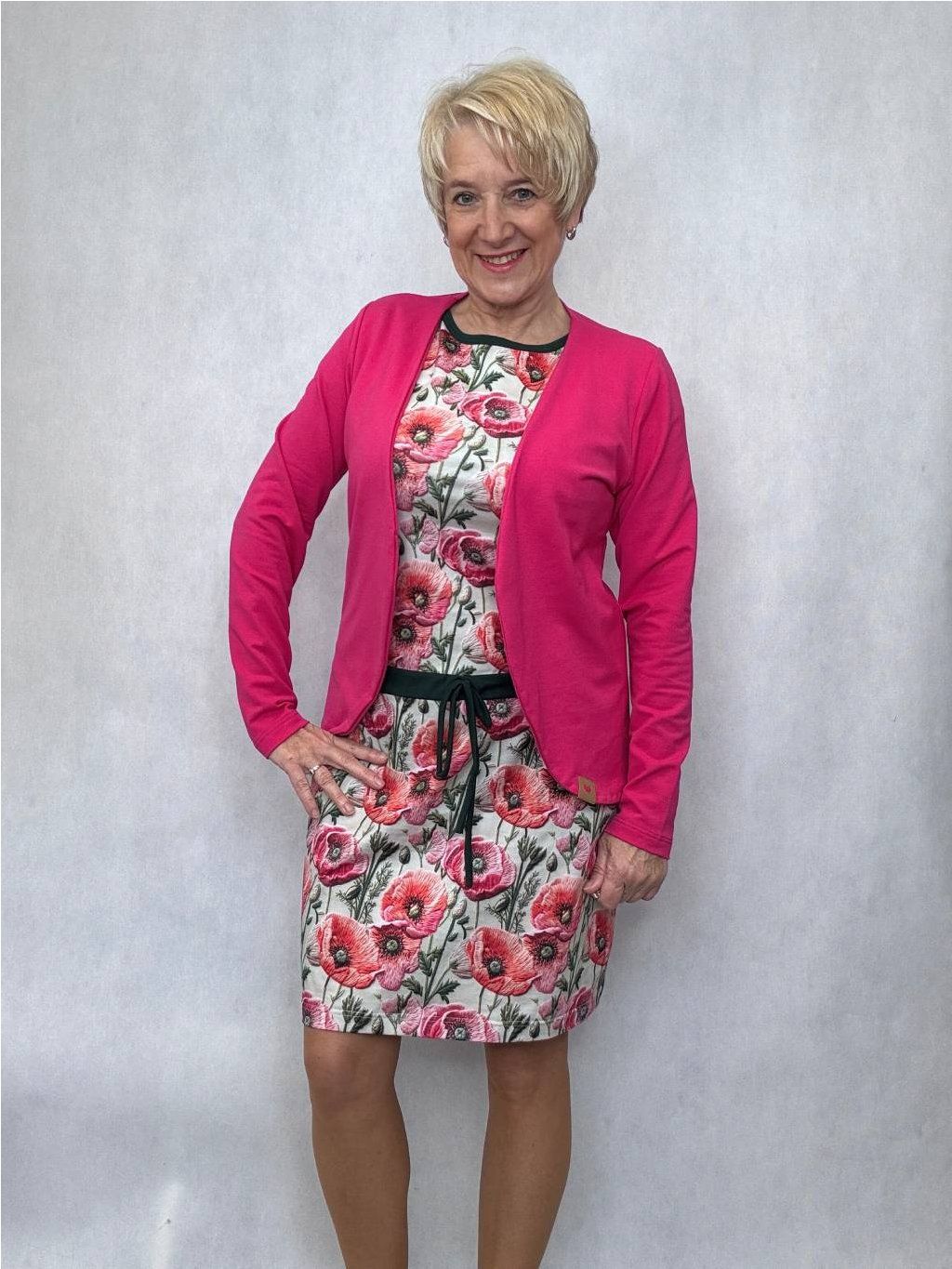 Velmi příjemný materiál - bavlněný úplet. K šatům se vám hodí blejzr, které mám ve spoustu barev a odstínech, mrkněte SEM.