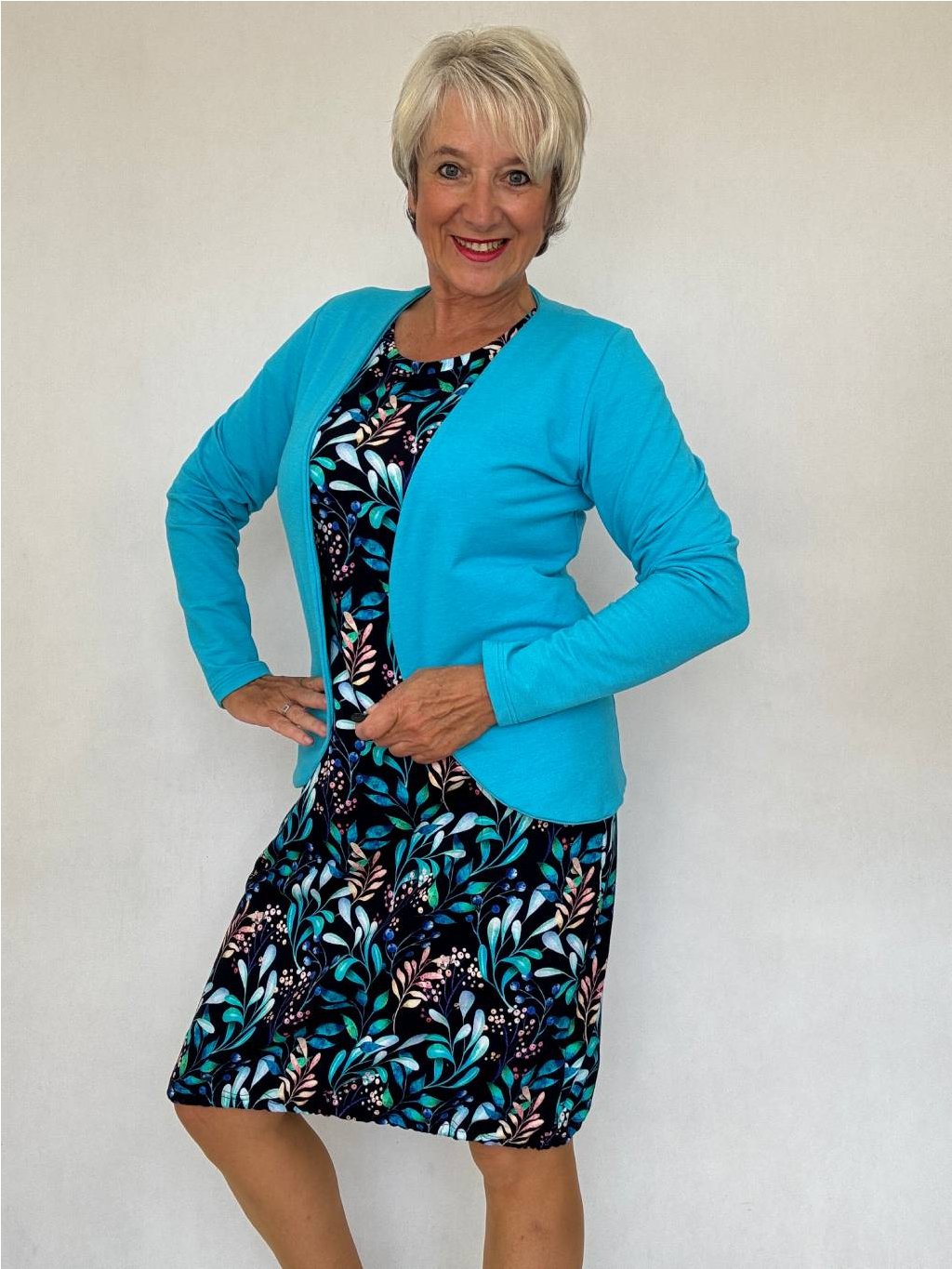 Modelka měří 162 cm a má velikost M (prsa 98 cm, pas 84cm, boky 102 cm)