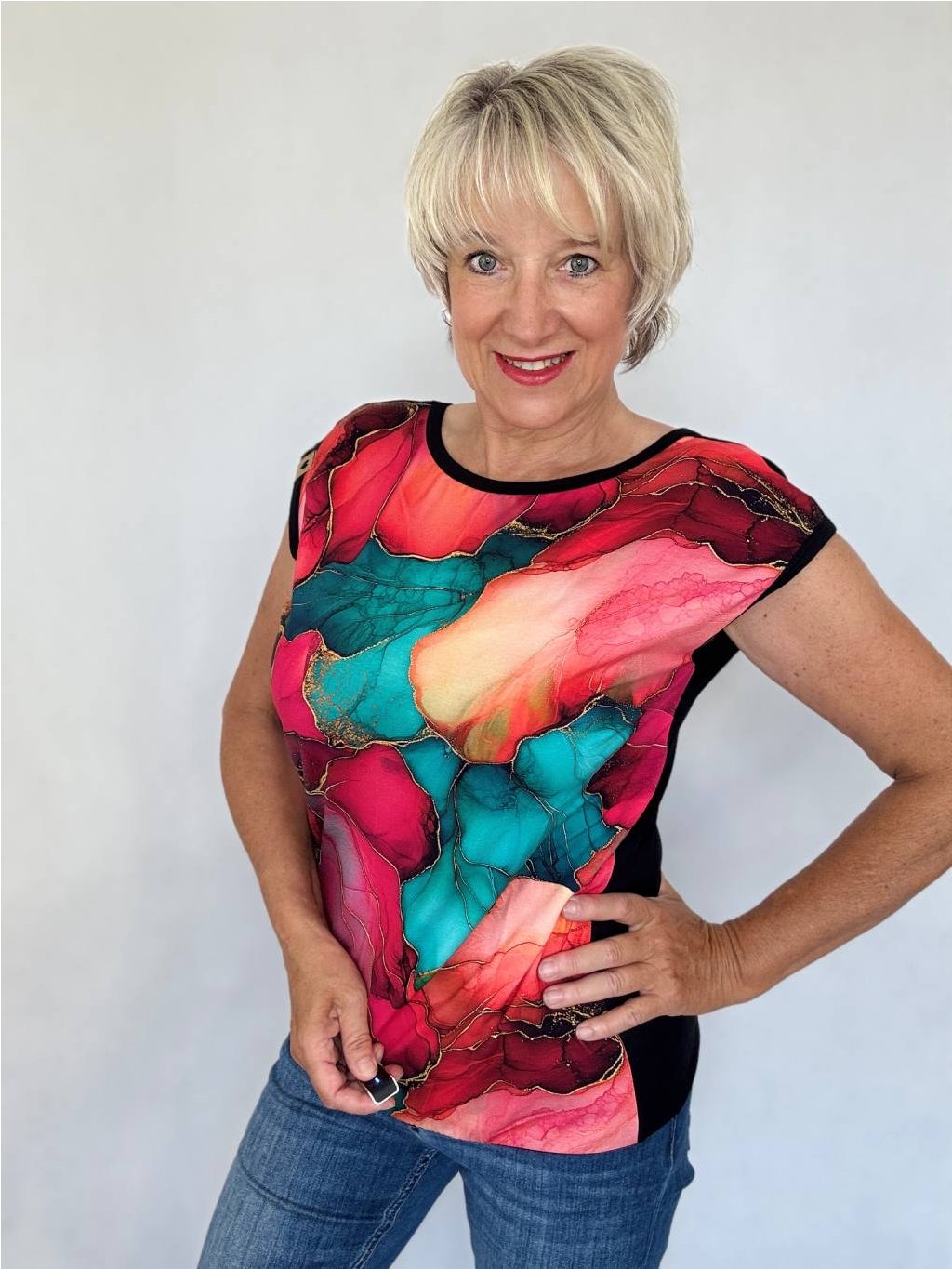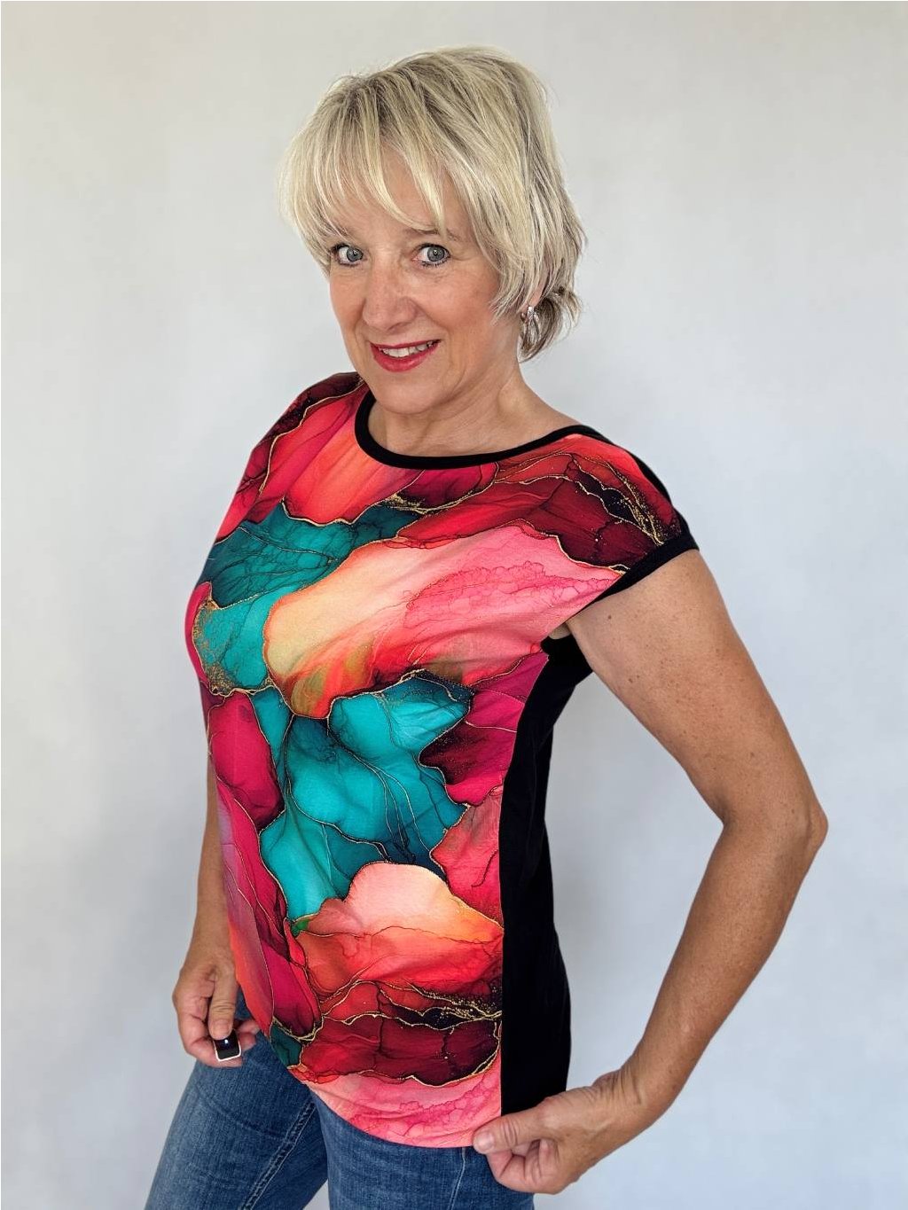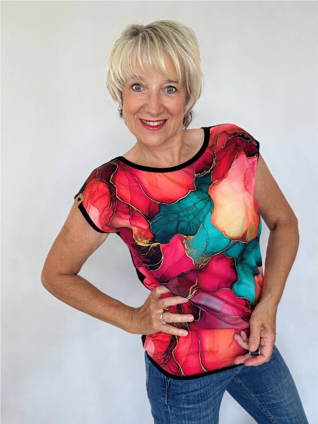 Díky jemnému pružnému stažení dole vytváří tričko podkasaný efekt, který elegantně maskuje případné nedostatky, jako je třeba větší bříško.