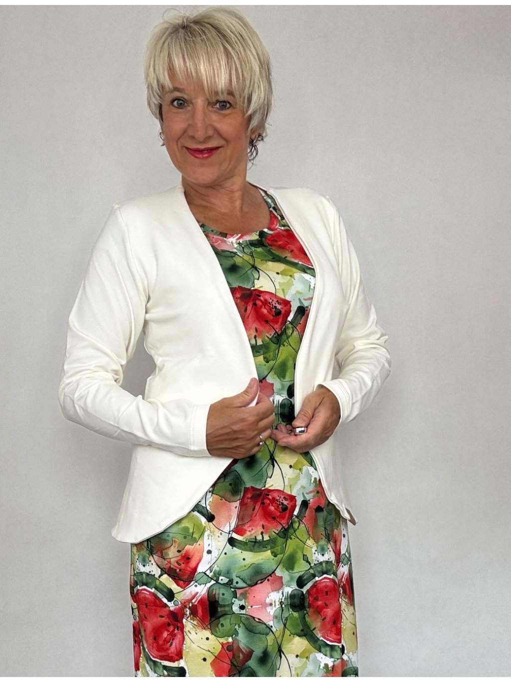 Modelka měří 162 cm a má velikost M (prsa 98 cm, pas 84cm, boky 102 cm)