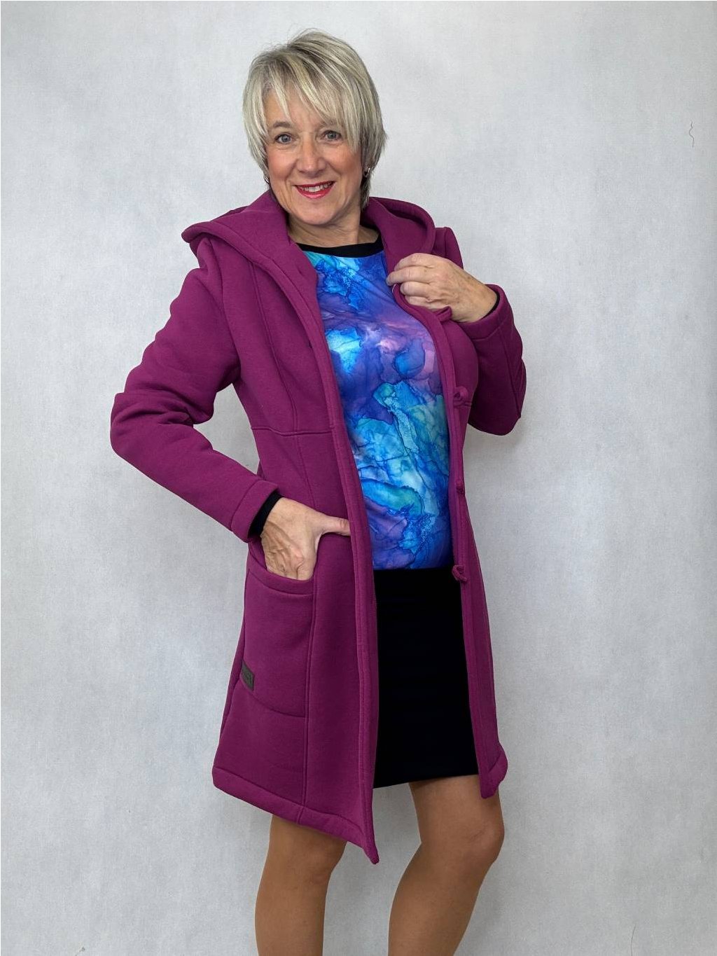 Tento autorský kabátek z dílny MARAKA šijí šikovné české ruce z kvalitní počesané teplákoviny, která je příjemně hřejivá a pohodlná. Počesaná teplákovina pouští chloupek, což vymizí po prvním vyprání.