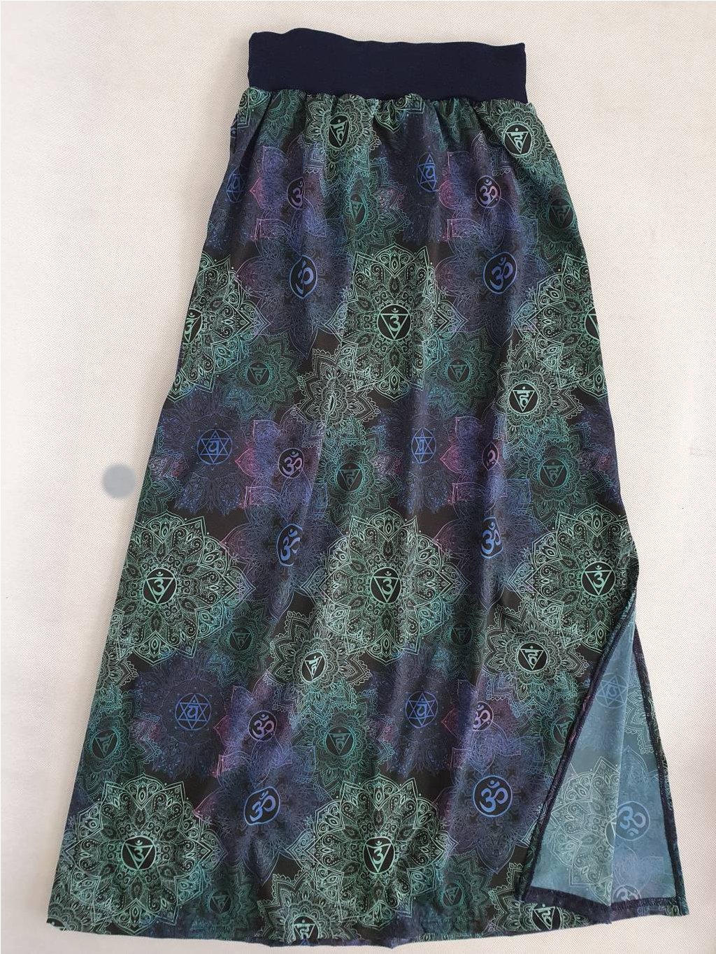 Prosím, pečlivě měřte, sukně je z mírně z elastického materiálu - důležitá je proto šířka pasu, aby se sukně přetáhla přes boky.
