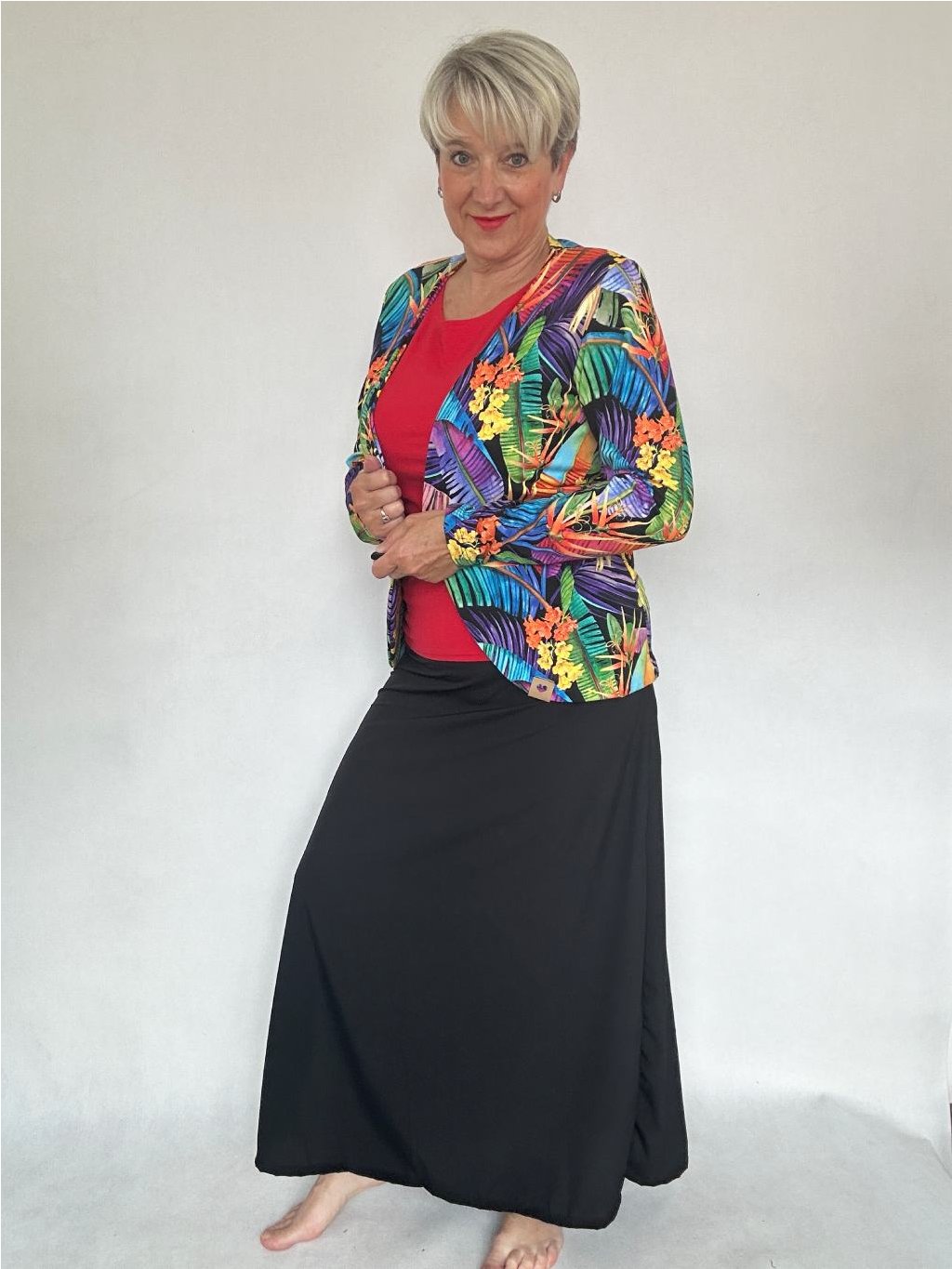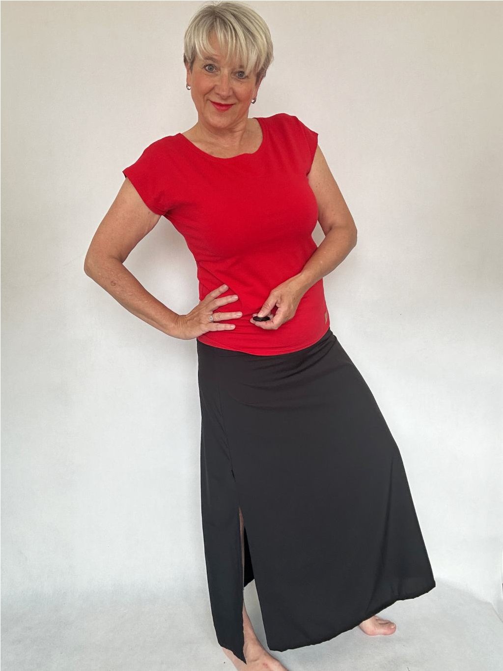 Prosím, pečlivě měřte, sukně je z mírně z elastického materiálu - důležitá je proto šířka pasu, aby se sukně přetáhla přes boky.