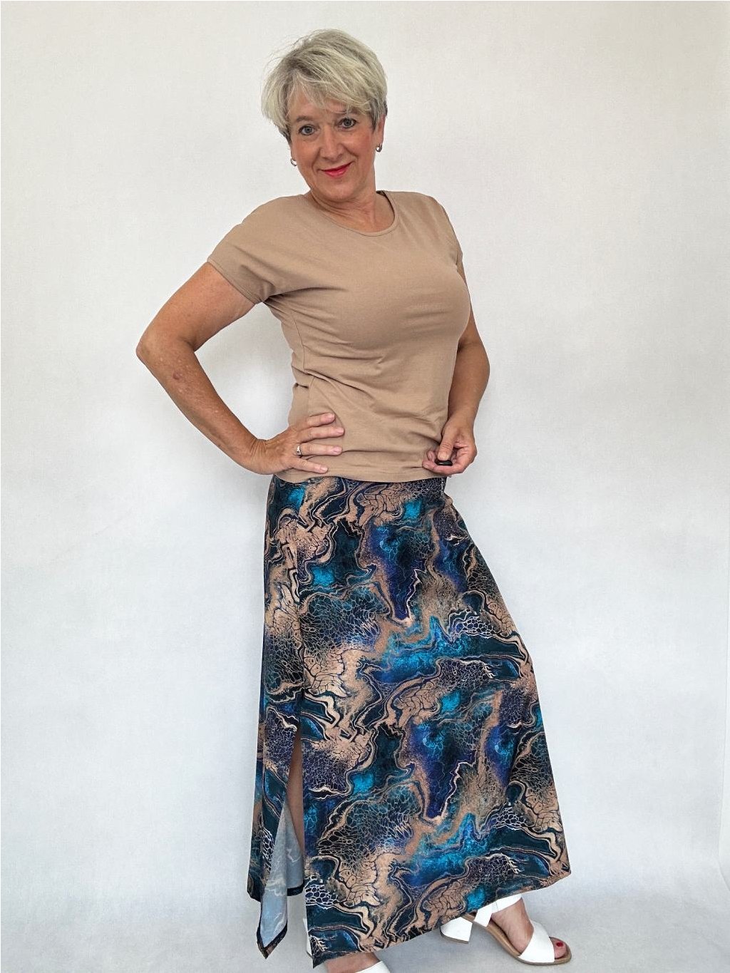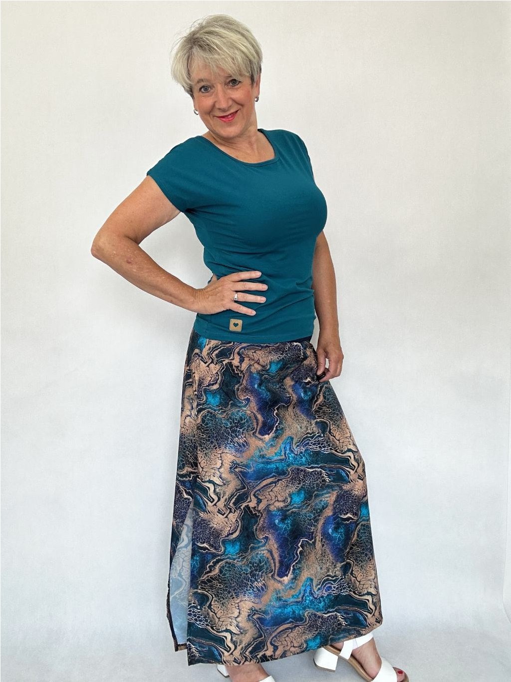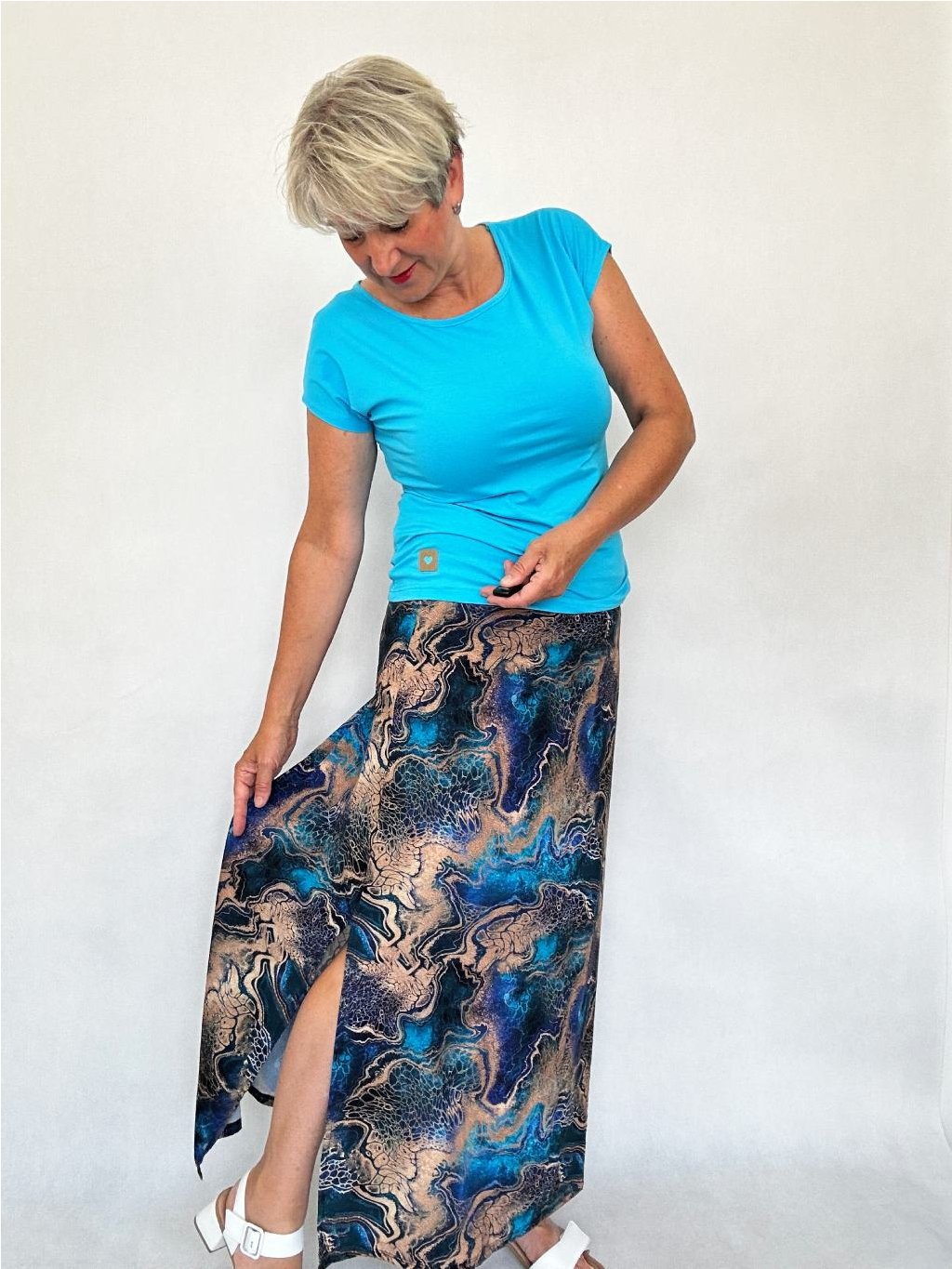 Maxi sukně je zaručeným klíčem k úspěchu už svým střihem. Dolaďte k ní jednoduchý top či nátělník a perfektní outfit je na světě. Sukně má rozparek dlouhý 43 cm, v pase je všitý elastický náplet. Materiál je také označována jako silky či falešné hedvábí. Šatovka je příjemným, lesklým a splývavým materiálem, který je vhodný na každodenní nošení, ale i slavnostní akce. Je velice vzdušný, nemačká se - krásně jemný materiál, který doporučuji vyzkoušet.