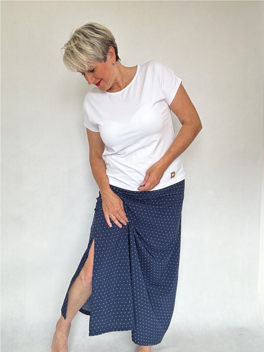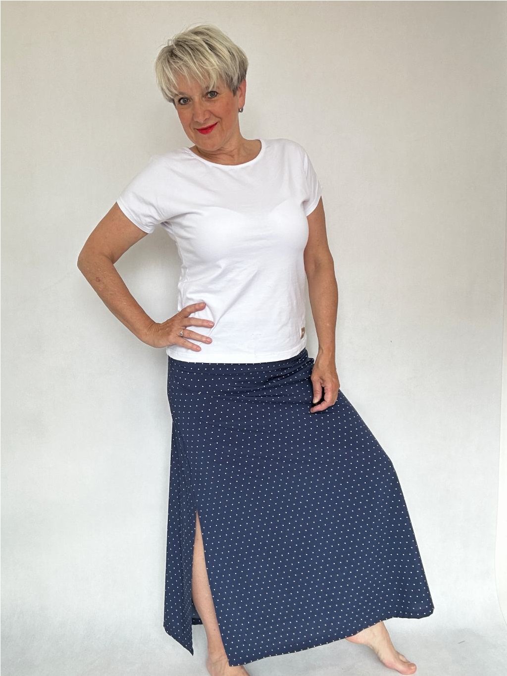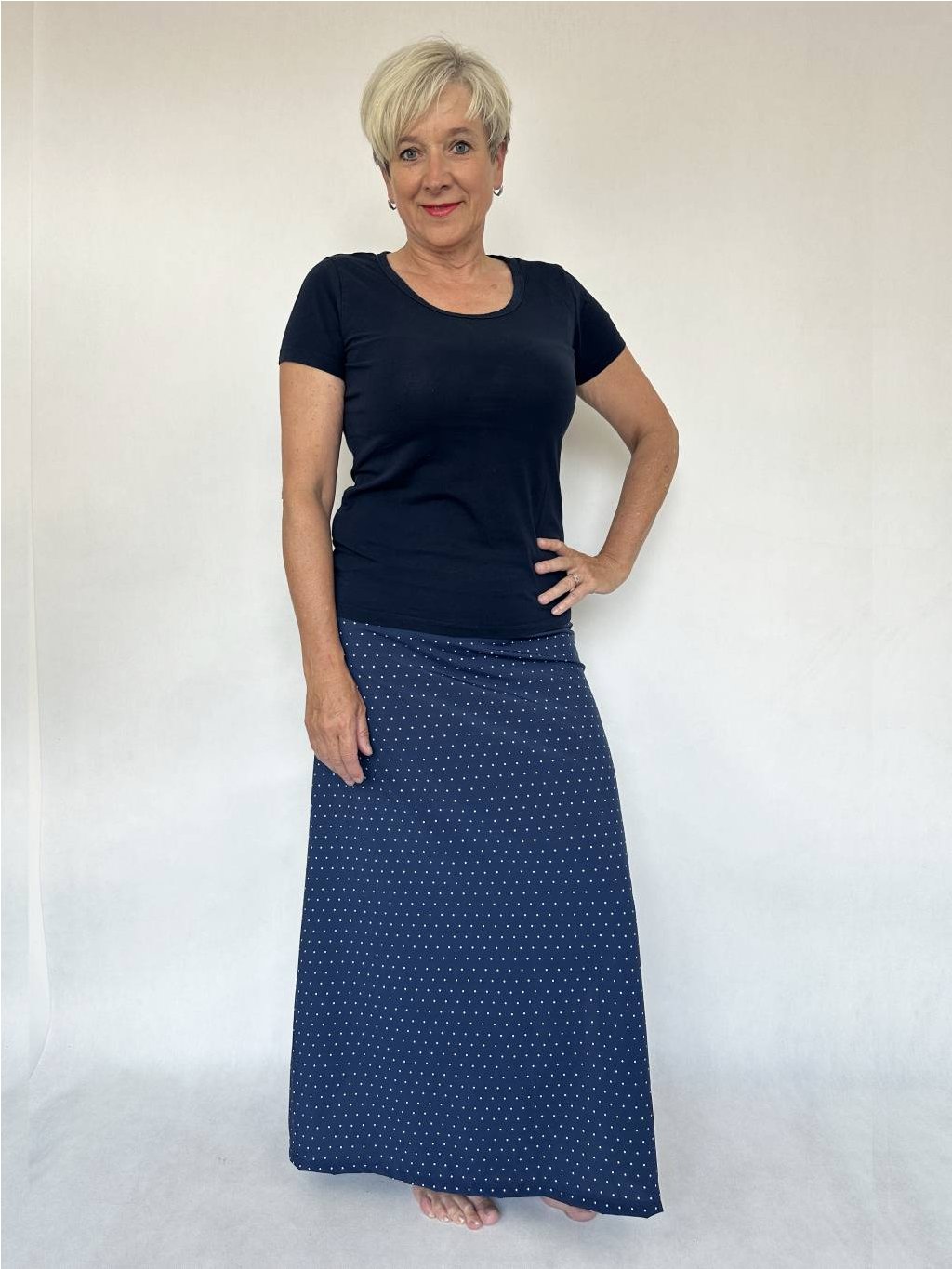 Dlouhá sukně? Ukrývá rafinovanost. Maxi sukně je zaručeným klíčem k úspěchu už svým střihem. Dolaďte k ní jednoduchý top či nátělník a perfektní outfit je na světě. Sukně má rozparek dlouhý 43 cm, v pase je všitý elastický náplet.