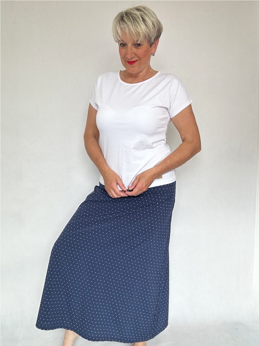 Prosím, pečlivě měřte, sukně není z elastického materiálu - důležitá je šířka pasu, aby se sukně přetáhla přes boky.