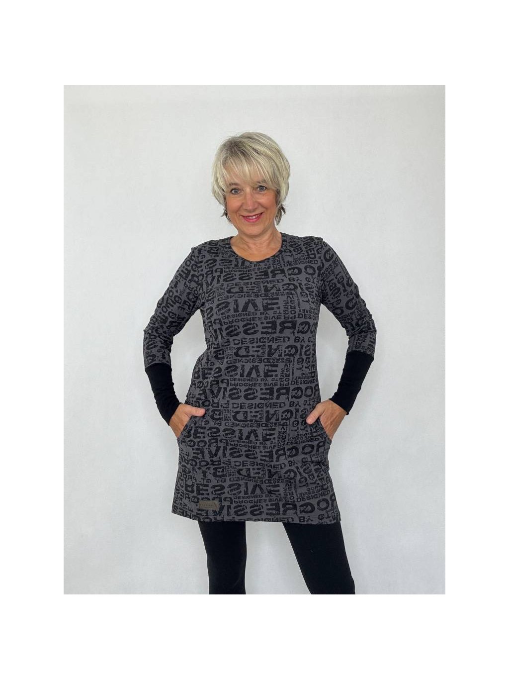 Pohodlný, postavě lichotící střih, skvěle padne na jakoukoliv postavu, zvýrazní vaše křivky a a vykouzlí krásnou siluetu, aniž by vás cokoliv škrtilo. Boční kapsy jsou praktickým bonusem. Prodloužená zadní délka, přední díl do obloučku. Rukávy mají delší "náplet" z pružné černé látky. Kombinujte se silonkami (menší dámy), legínami, džínami nebo úzkými kalhoty. Na předním díle koženkový štítek podtrhne originalitu modelu. Skvěle ladí k blejzrům, které šiji ve spoustě barev ZDE
