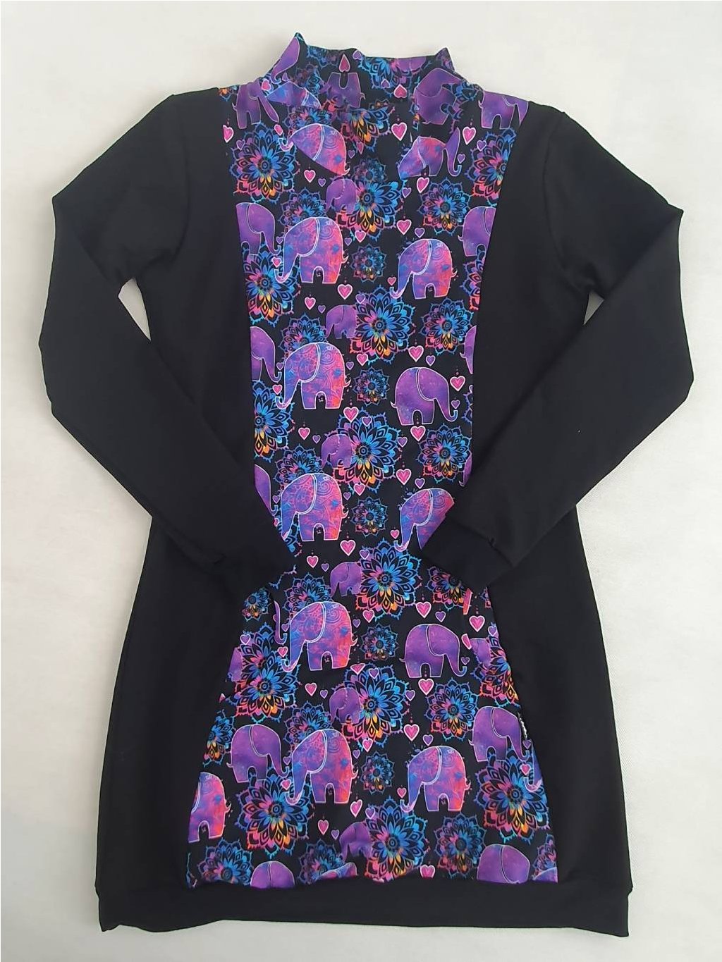 XL: obvod hrudníku 108 cm, pas 104 cm, boky 114 cm, celková délka (měřen zadní díl) 81 cm