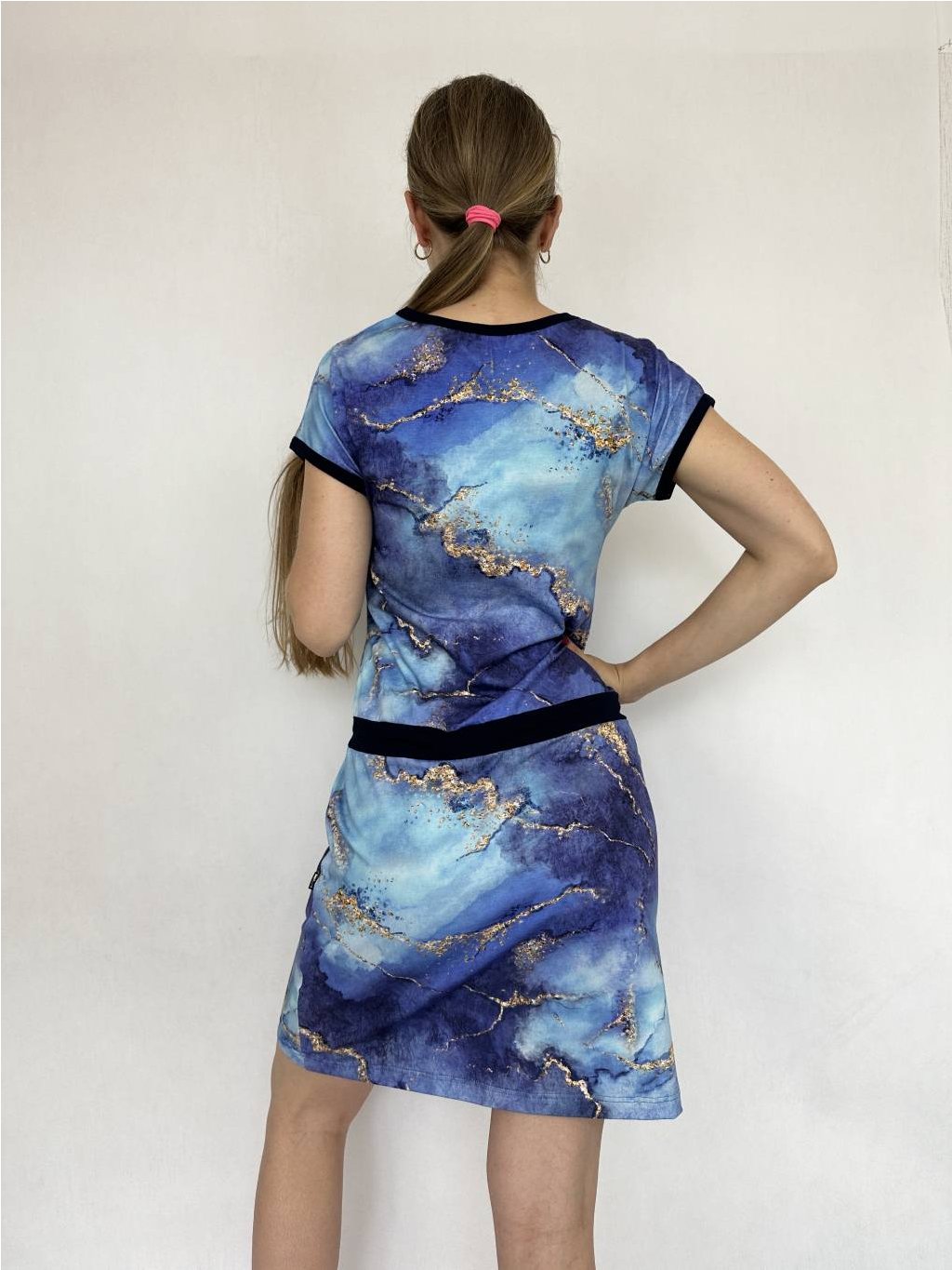 - Šaty Iris mají výstřih lemovaný kontrastním úpletem