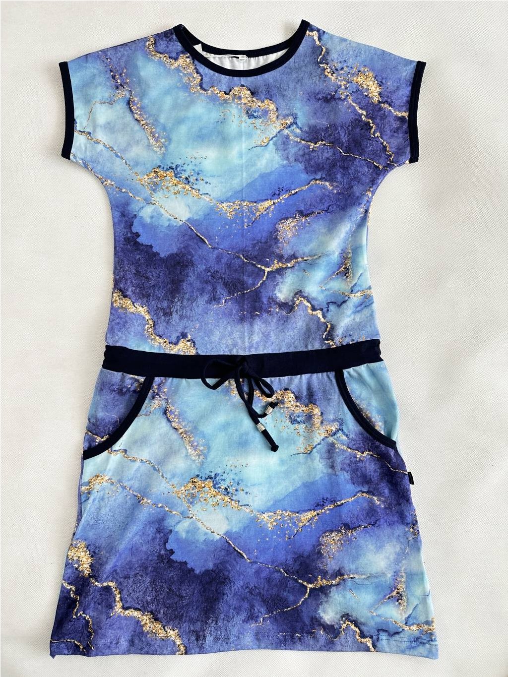 Spadlý rukáv je lemovaný a šaty mají praktické kapsy