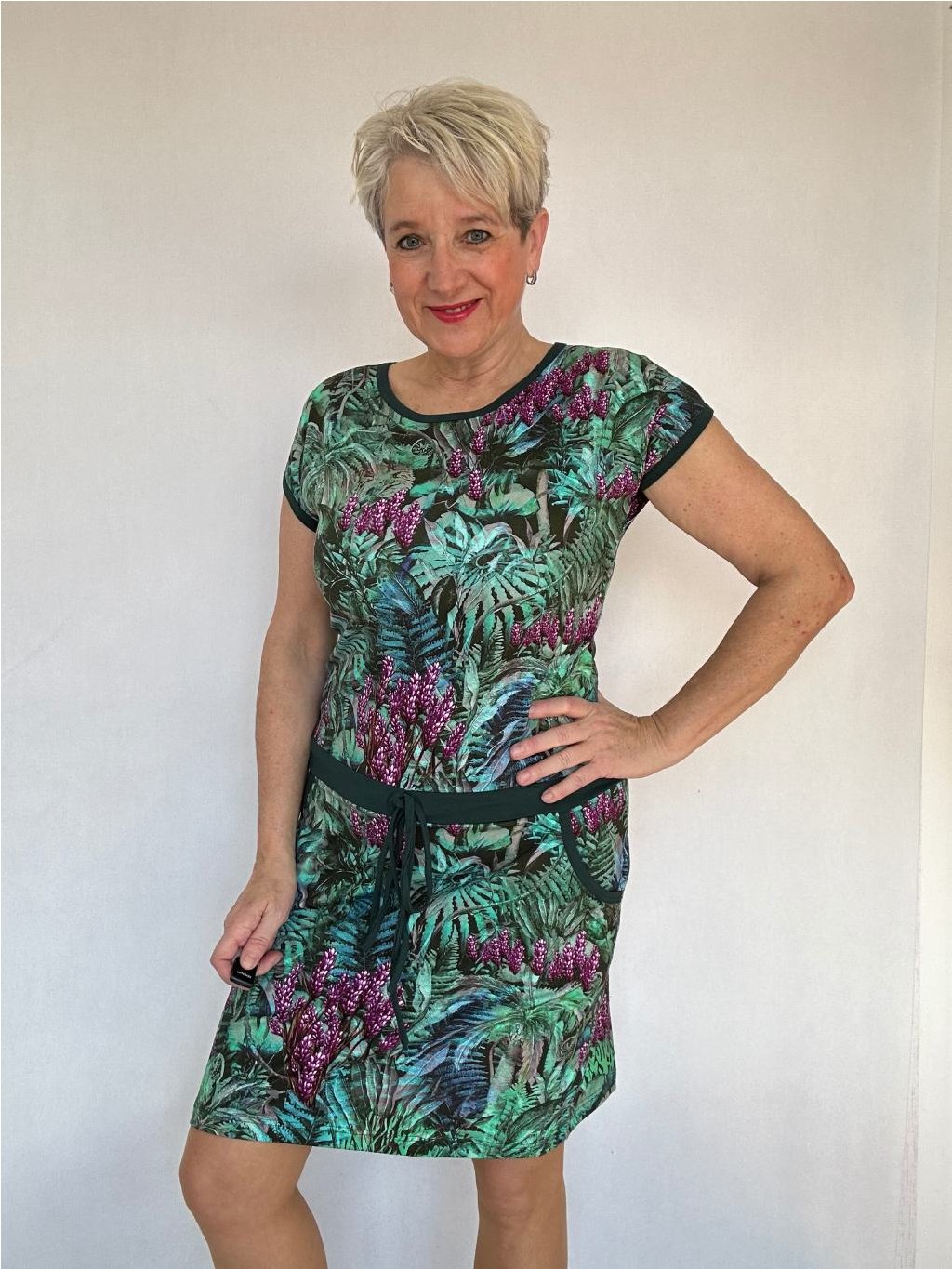 - Spadlý rukáv je lemovaný a šaty mají praktické kapsy.