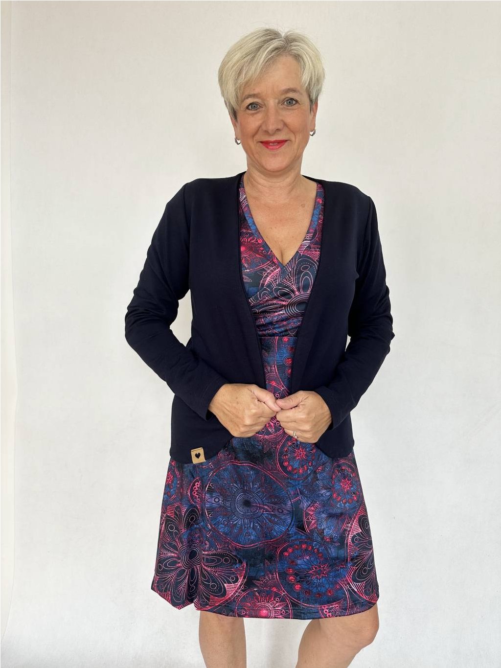 - Spodní díl je šitý do mírného áčka, které lichotí postavě a leccos skryje.