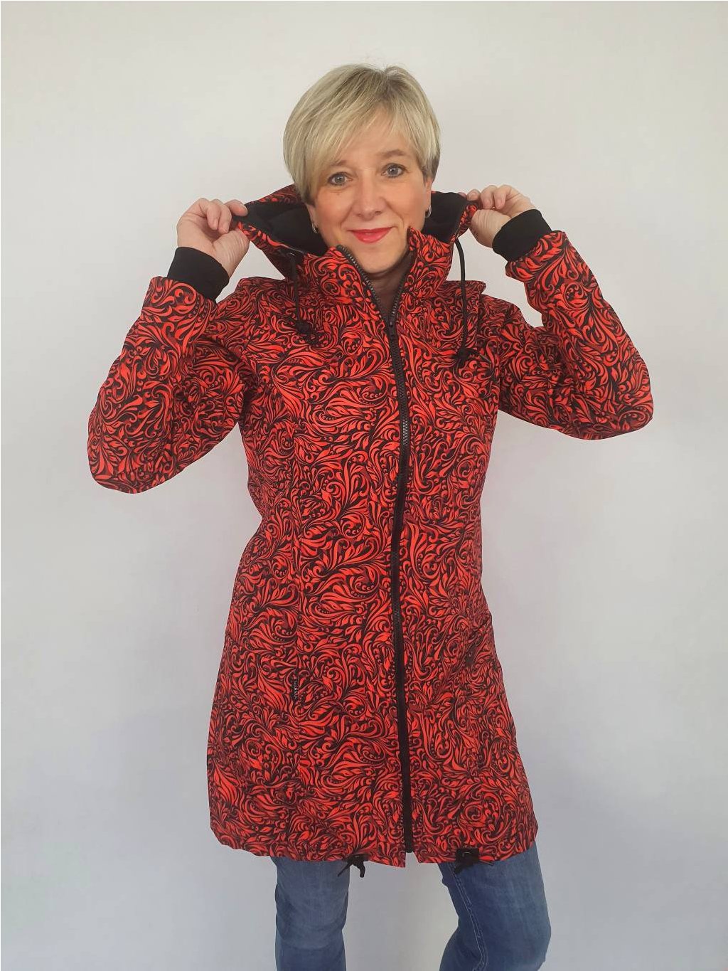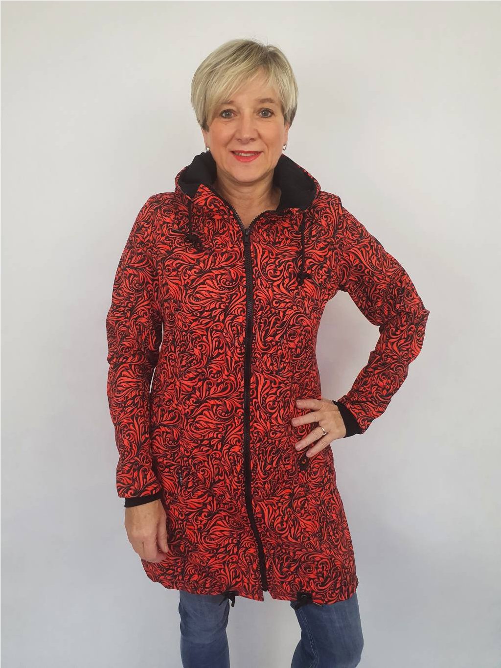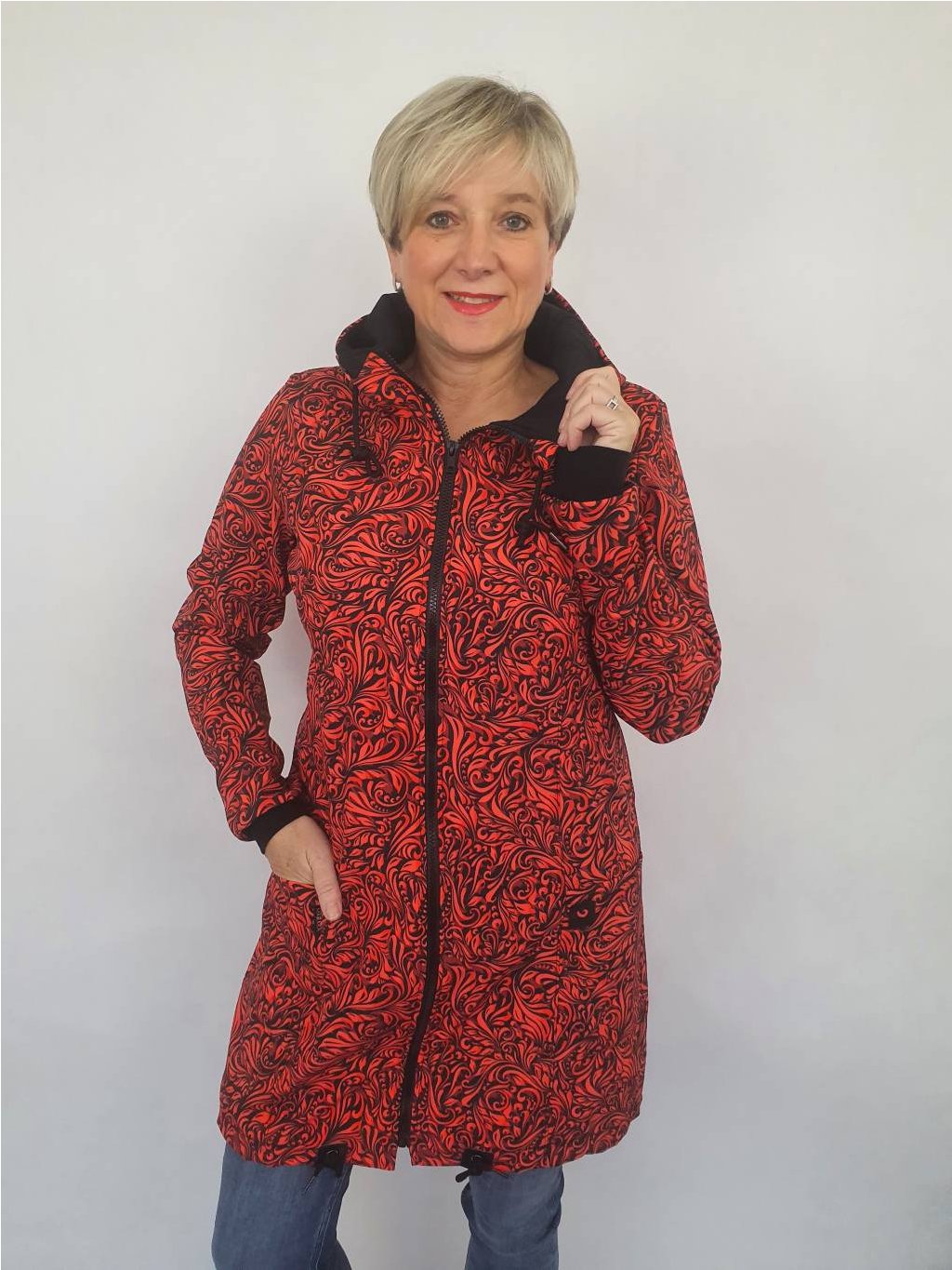 Kabát je ušitý ze zimního softshellu, který má vysokou odolnost proti promoknutí, chrání před větrem a pro větší tepelný i uživatelský komfort je zevnitř potažen vrstvou fleece. Pro dokonalou ženskou siluetu, je kabát projmutý - princesový střih, přes boky volnější a díky možnosti stahování v dolním lemu, získá váš kabát elegantní balonový střih.