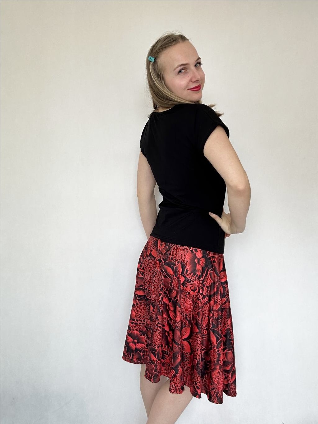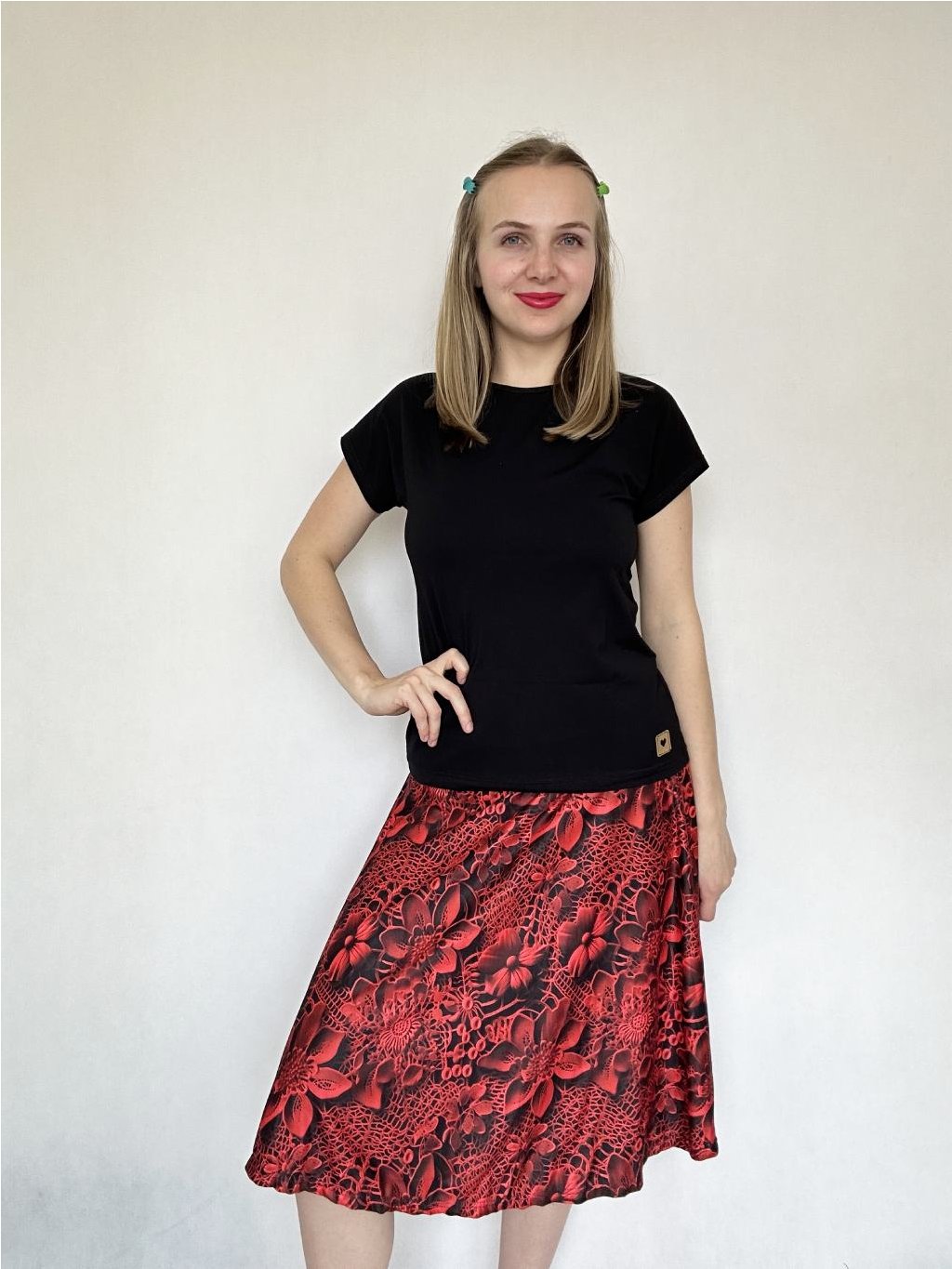 - Délku sukně lze regulovat i tím, že elastický náplet v pase přehnete napůl.
