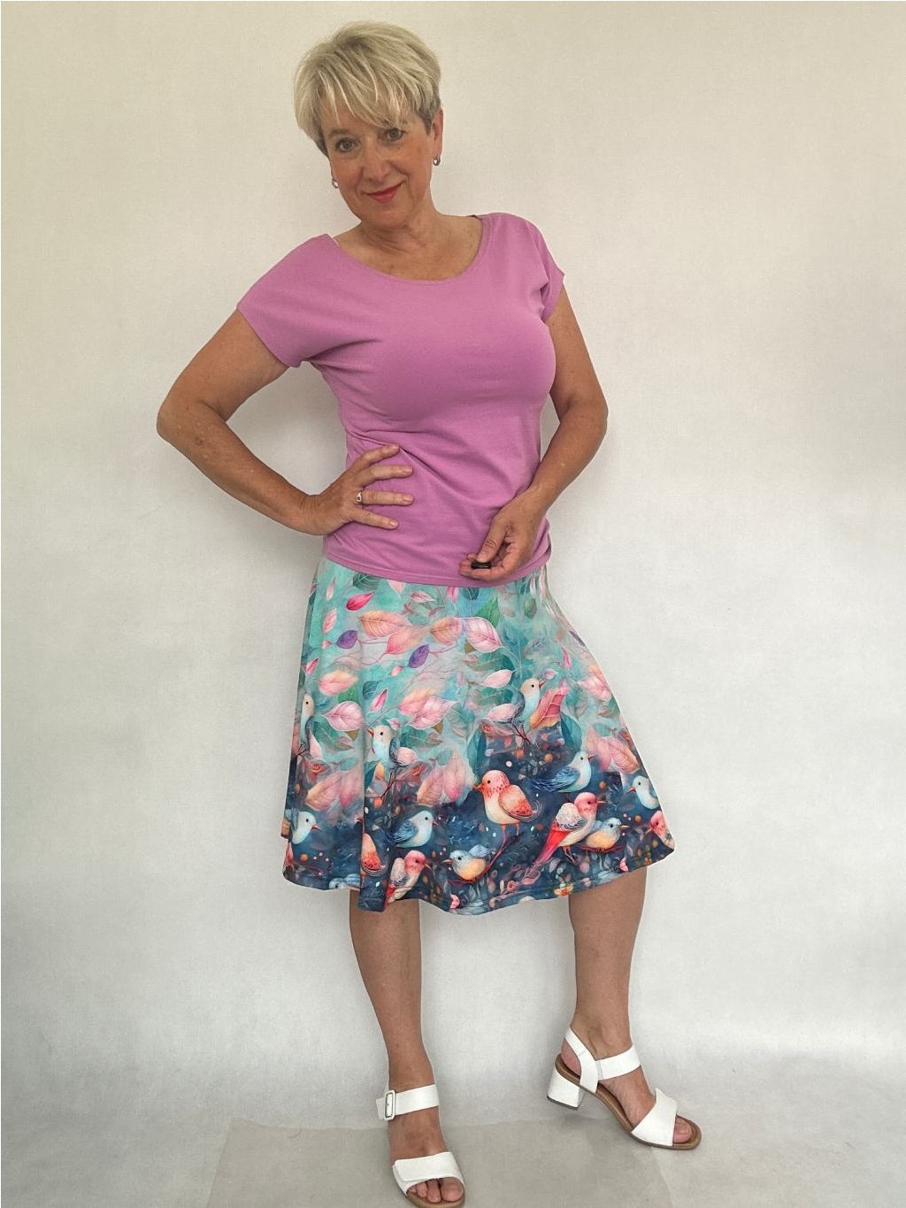 - Délku sukně lze regulovat i tím, že elastický náplet v pase přehnete napůl.
