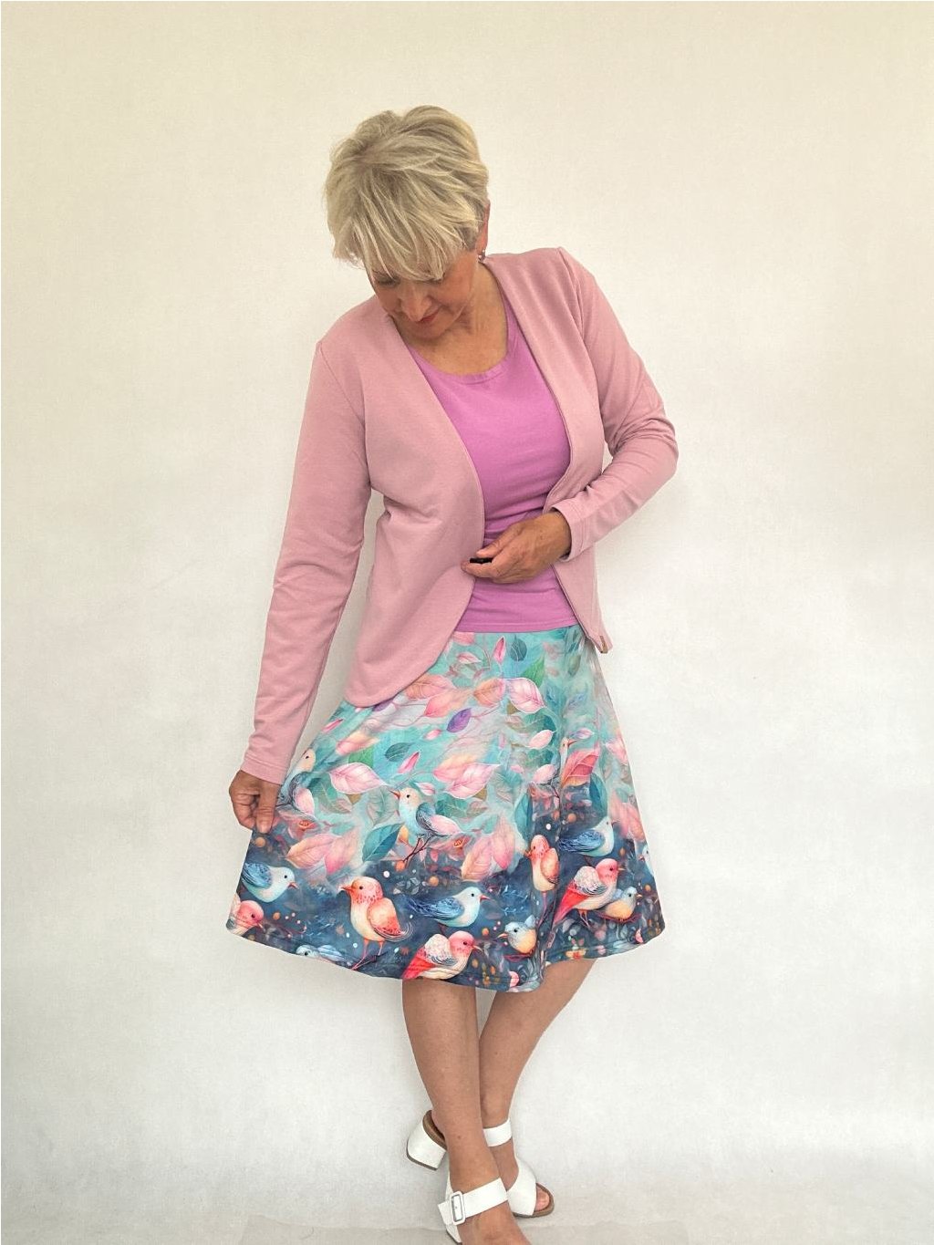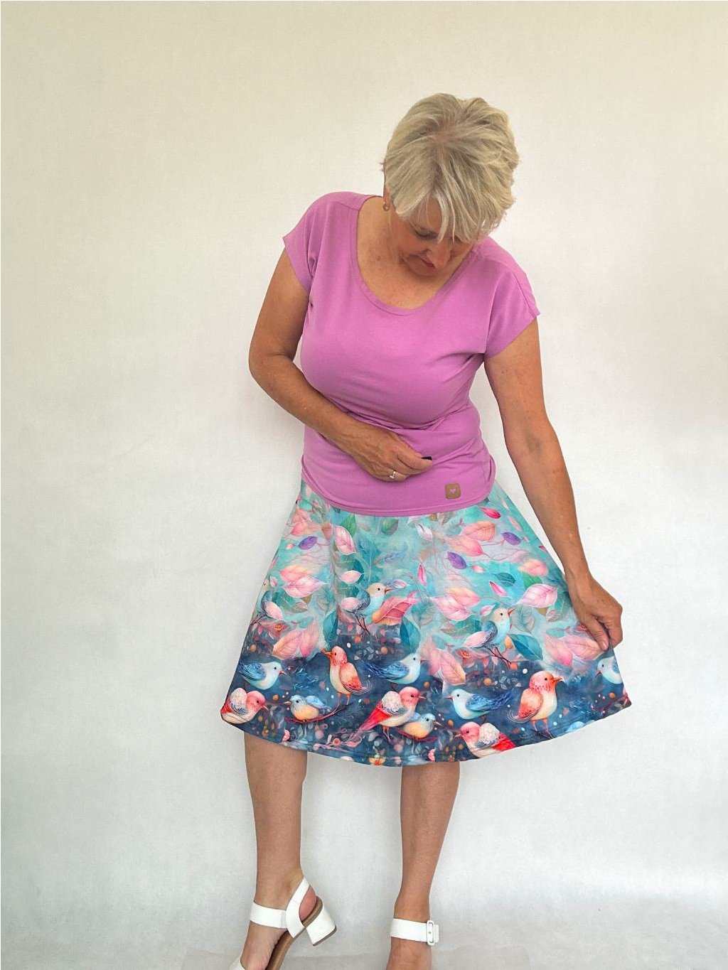 - Délku sukně lze regulovat i tím, že elastický náplet v pase přehnete napůl.