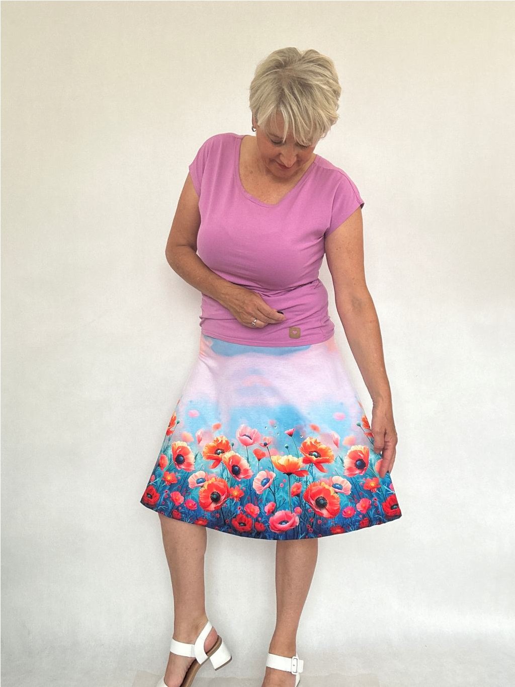 - Délku sukně lze regulovat i tím, že elastický náplet v pase přehnete napůl.