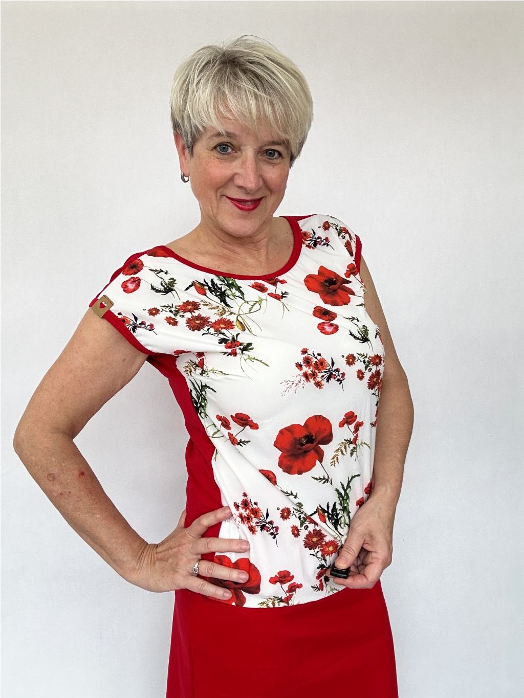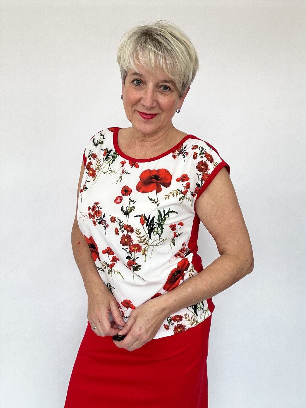 Představuji vám nový střih - tričko ESTER, které vás zaručeně okouzlí. Volnější střih a příjemný materiál vám zajistí maximální pohodlí po celý den. Přední díl z hebkého silky materiálu dodává tričku luxusní vzhled, zatímco zadní díl z úpletu zajišťuje vzdušnost a flexibilitu. Přední díl má prsní záševky, aby tričko dobře sedělo. Krátké rukávy a výstřih ve tvaru 'véčka' na zadní straně dodávají tričku šarm a lehkost. Díky jemnému pružnému stažení dole vytváří tričko podkasaný efekt, který elegantně maskuje případné nedostatky, jako je třeba větší bříško. Skvělé, že?"