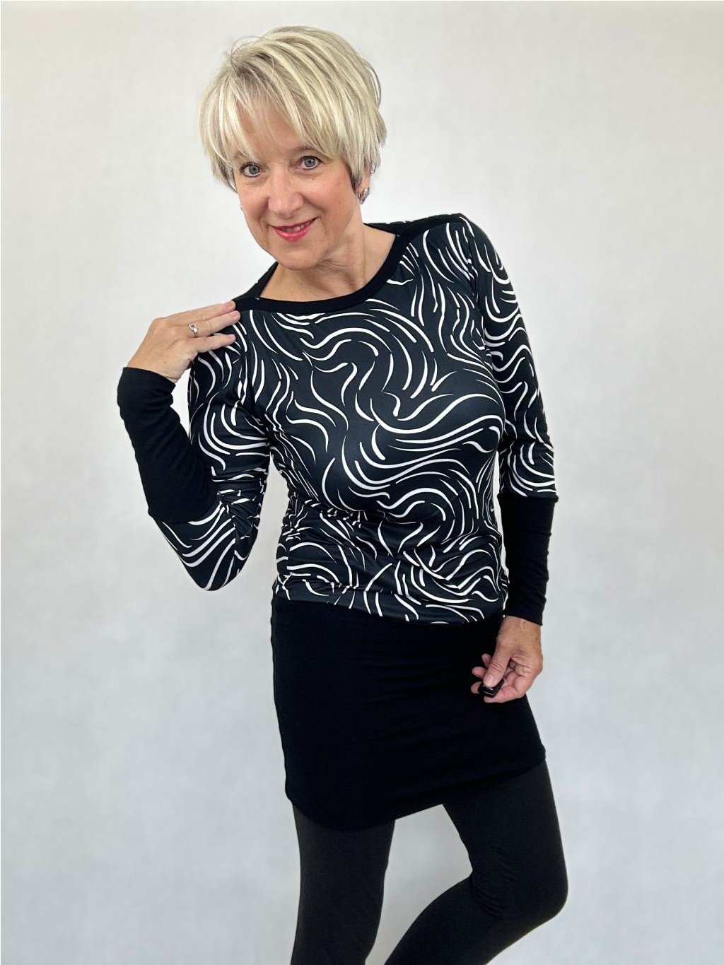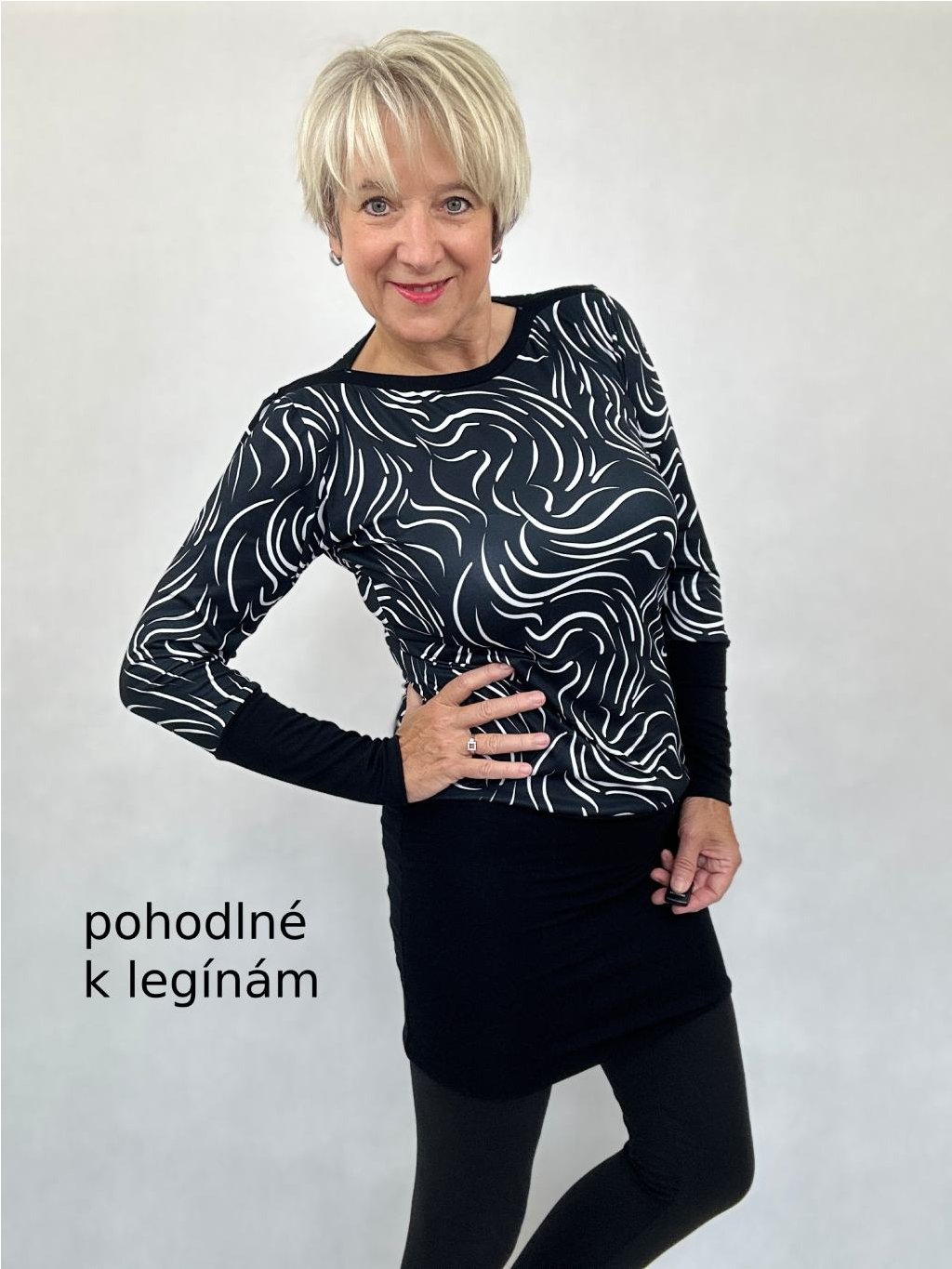 Tunika je šitá z materiálu MILK - mléčné hedvábí. Co se pod tím skrývá? Na omak je velmi hebký, jemný, splývavý materiál. Povrch působí jako bavlněný, úžasně příjemný na omak i na tělo. Při natažení neprosvítá, nezatrhává se, perfektně drží, splývá, nemačká se , neopírá se.
